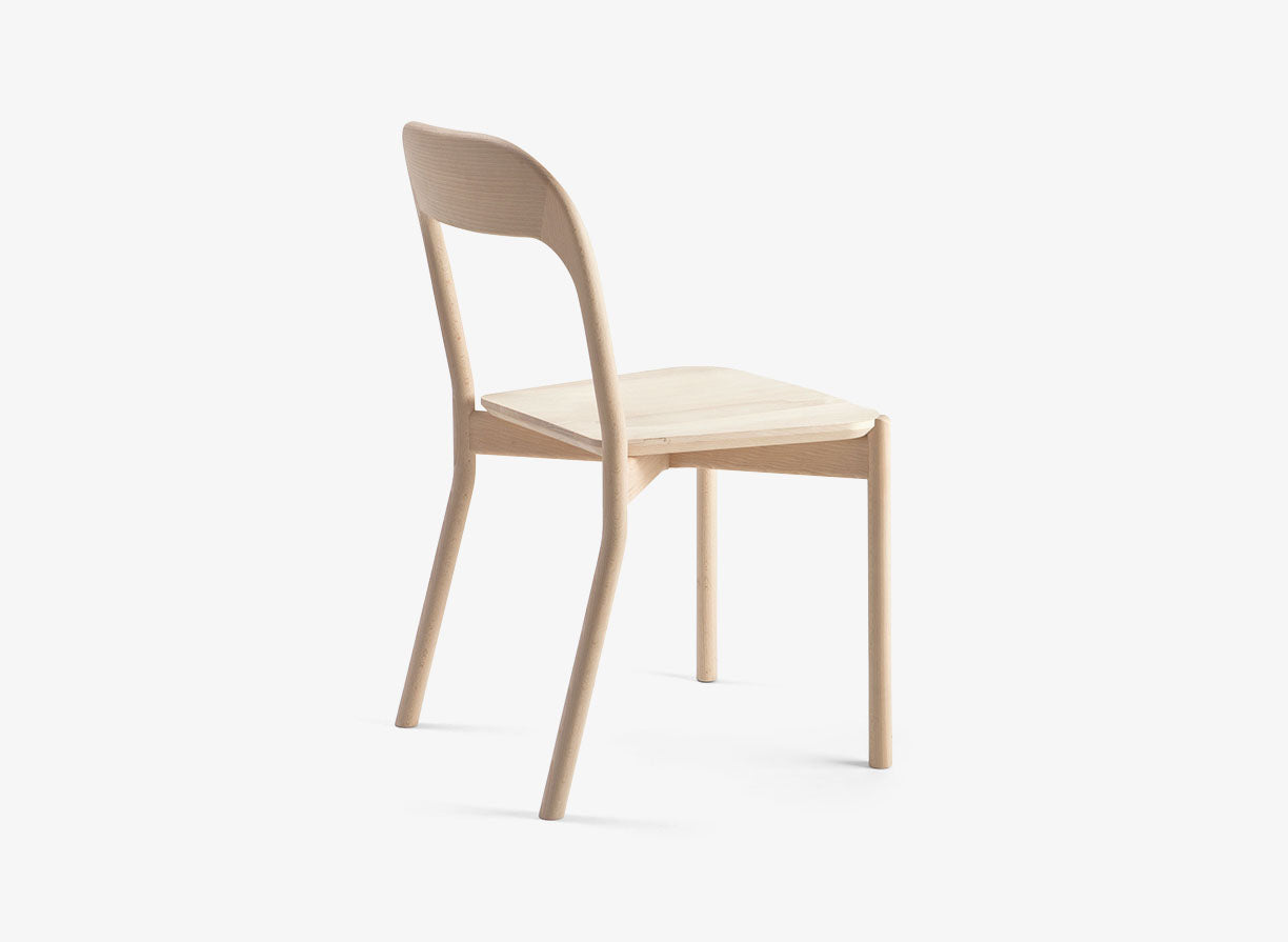 Dining chair with wooden seat and back in beech. Shaped backrest for easy grip and handling. Stackable.