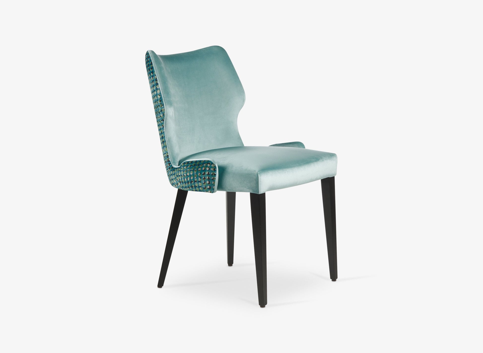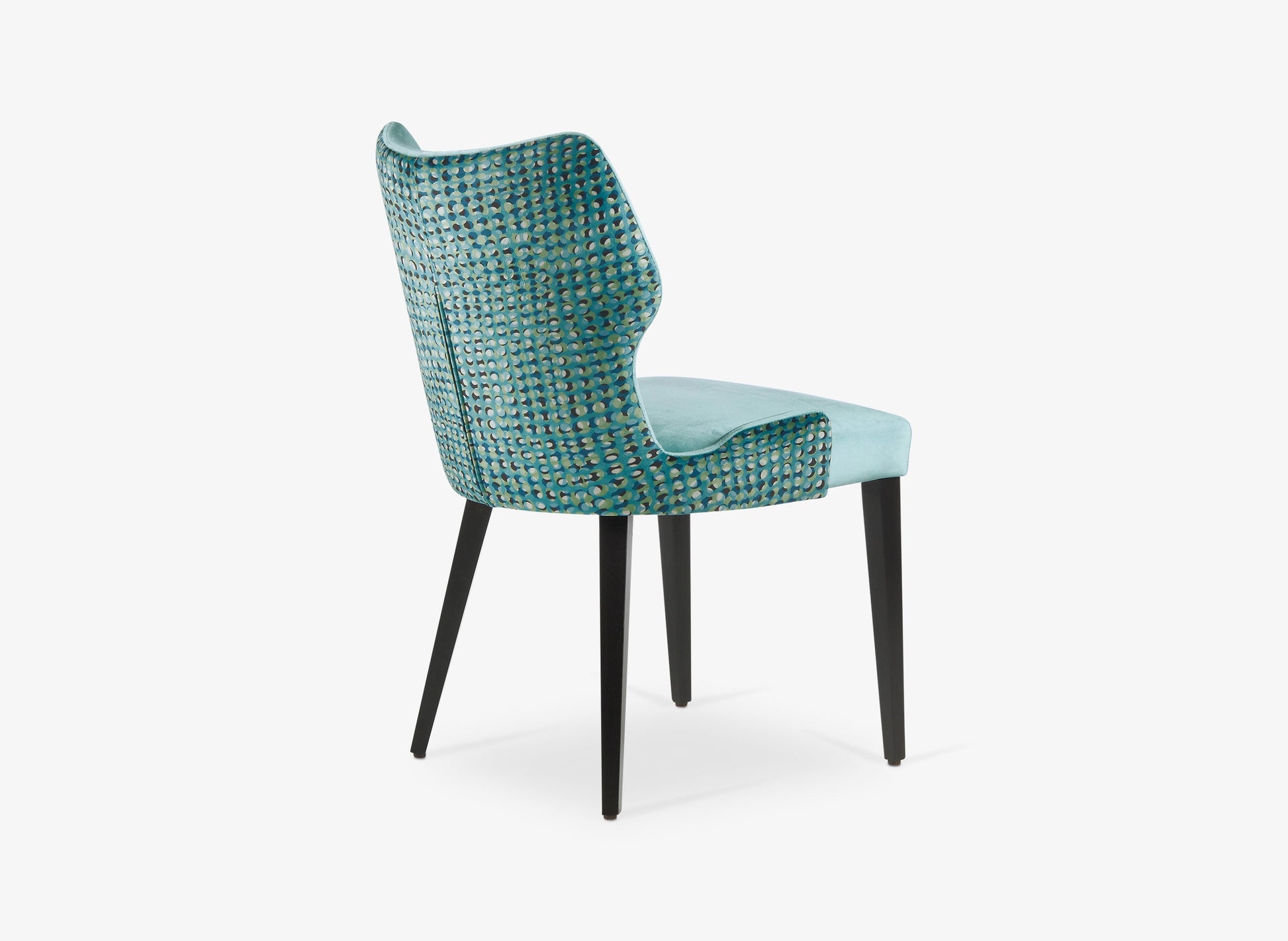 Dining chair with upholstered seat and back. Solid beech tapered legs.