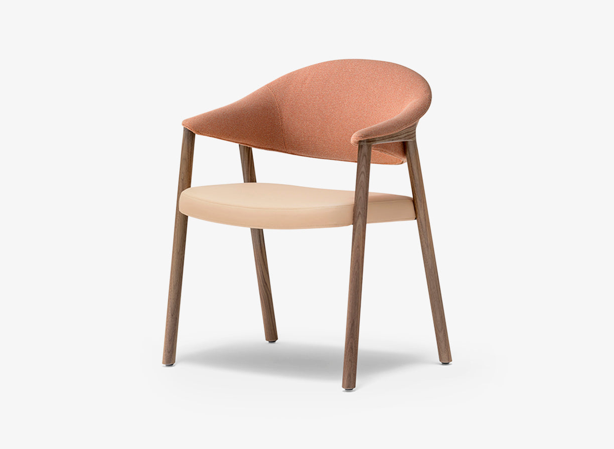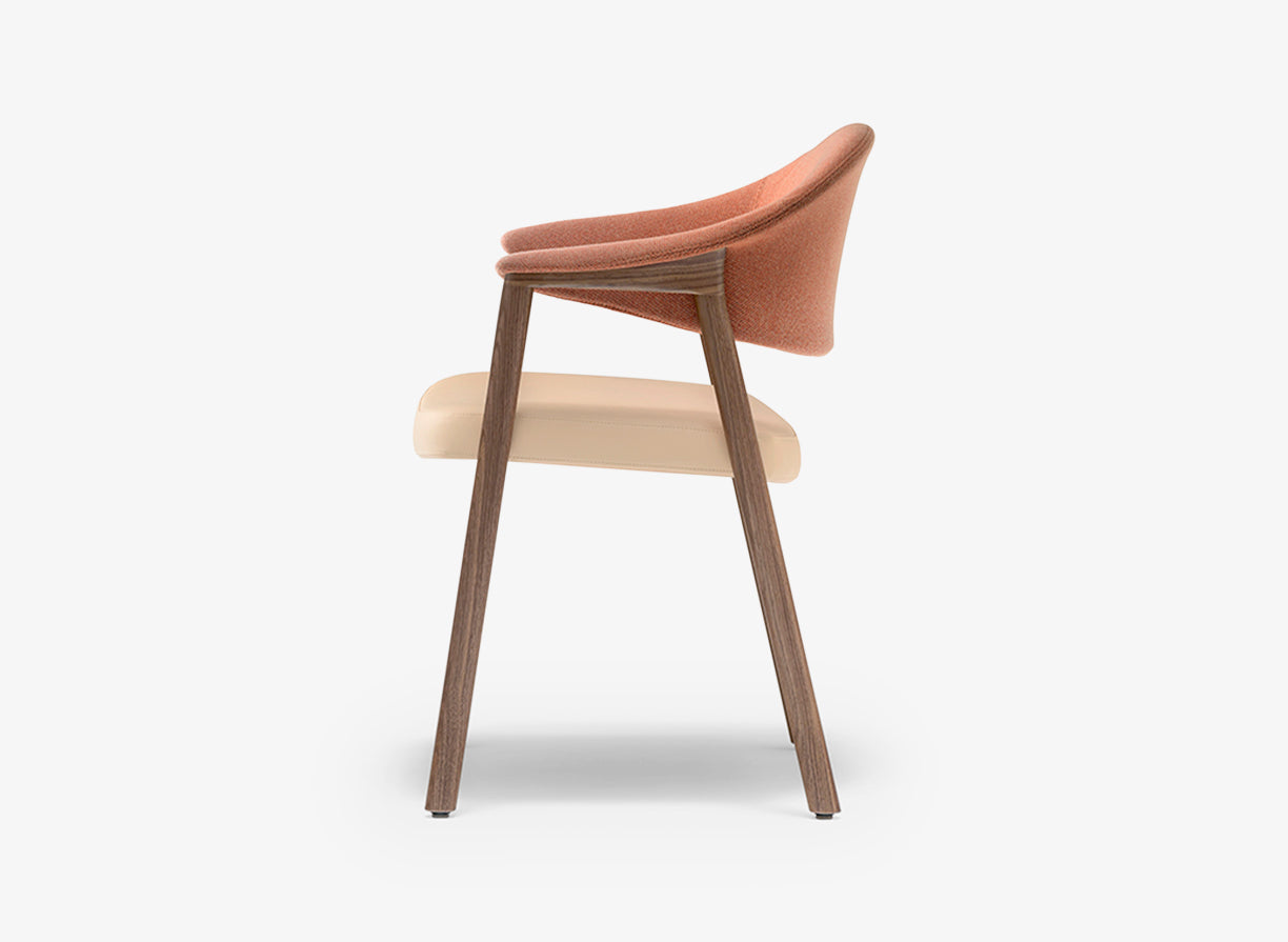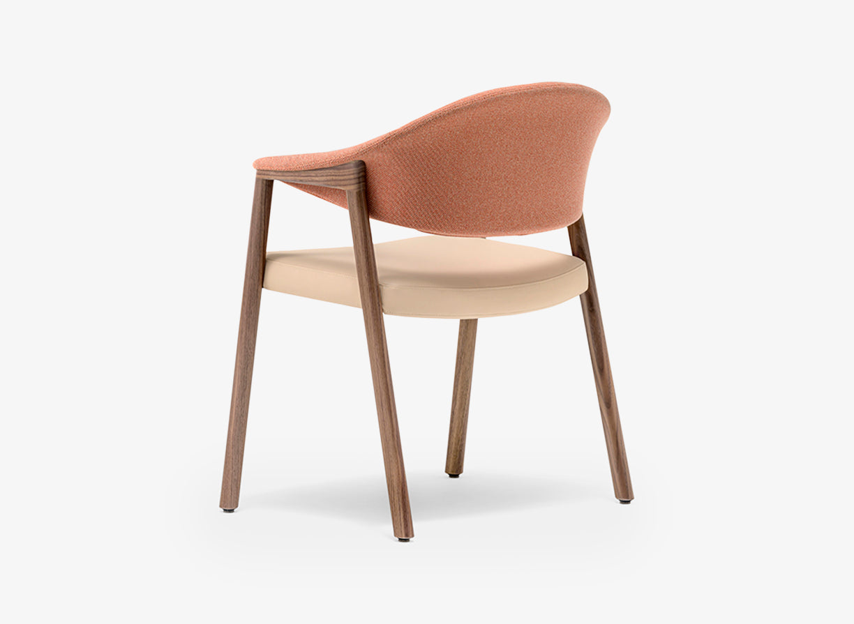 Armchair in Ash or American walnut with upholstered seat. Backrest is made of injected polyurethane foam.